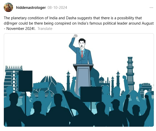Back in October 2024, I analyzed India’s planetary conditions and predicted a potential danger being conspired against a major Indian political leader between August and November 2024.