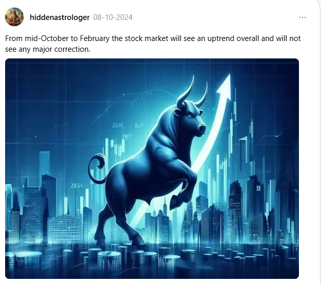 Back on October 8th, when the Indian stock market was experiencing a sharp decline, I made a bold prediction—there would be an uptrend post-October. Despite the market’s bearish sentiment at the time, my analysis suggested a turnaround was on the horizon.