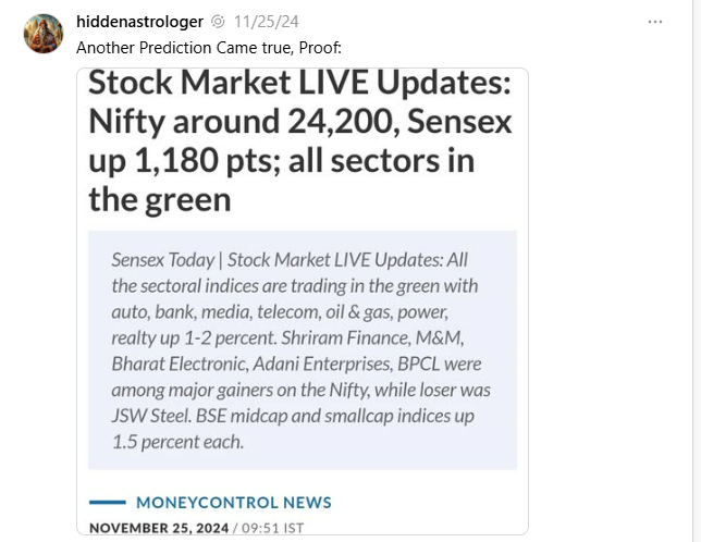 Fast forward to November 25th, and the markets had indeed rebounded, validating my forecast. Here’s an article confirming the same: Post Link can be found here.